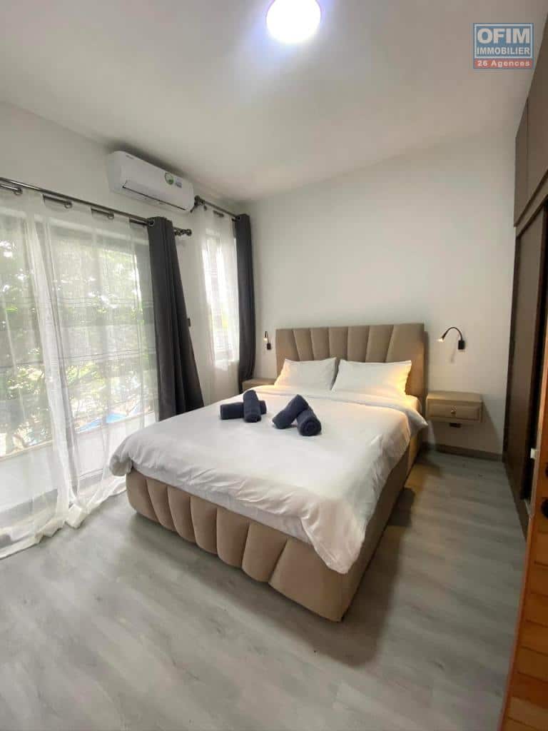OFIM Immobilier vous propose à louer ce magnifique appartement, idéalement situé à Flic en Flac, au sein d’une résidence haut de gamme offrant piscine et salle de sport communes, à seulement 5 minutes à pied de la plage et des commerces.
