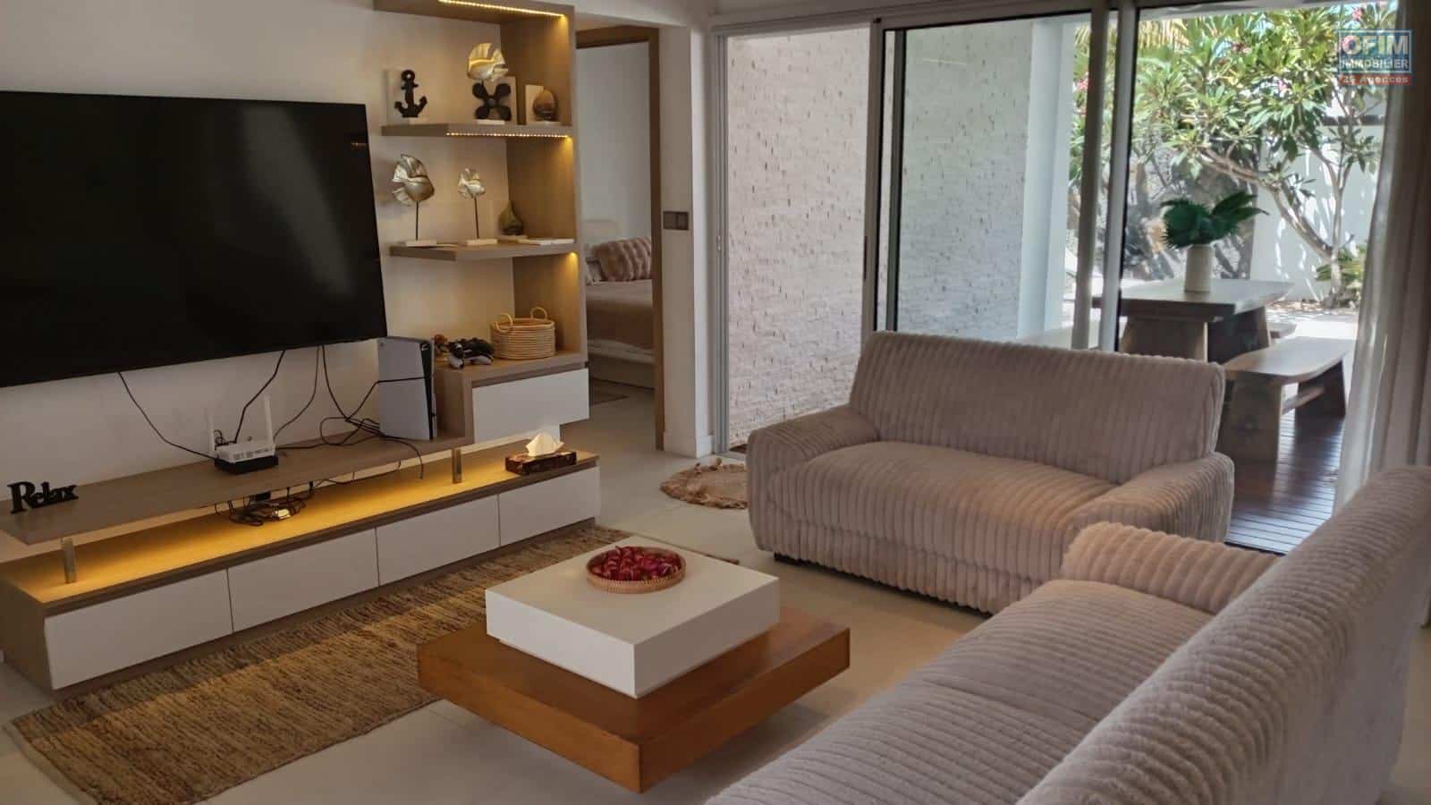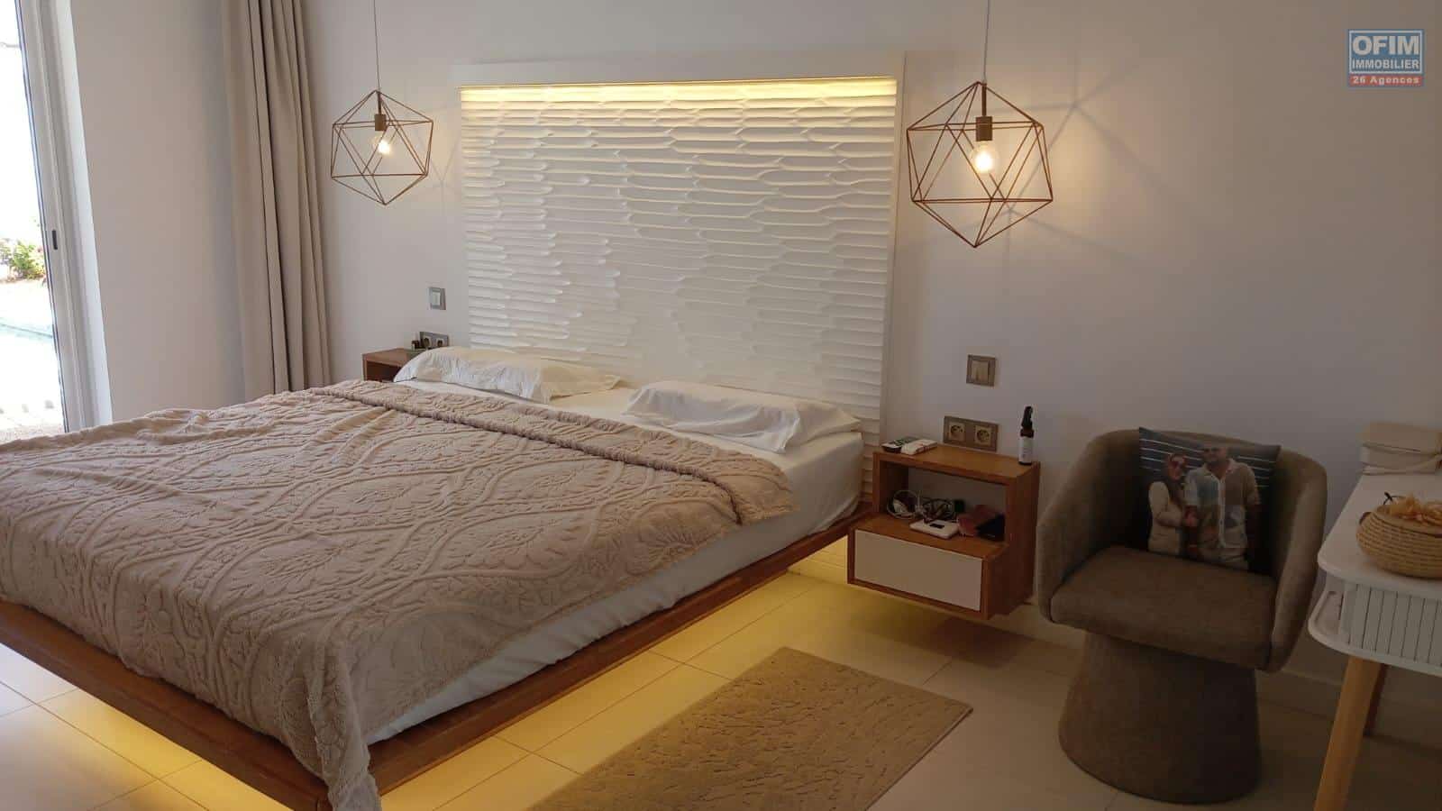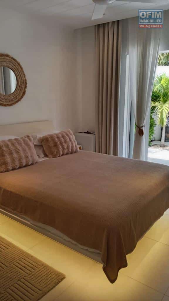 OFIM Immobilier vous propose à la location cette villa haut de gamme meublée, située au cœur d’un des domaines les plus recherchés de Grand Baie.