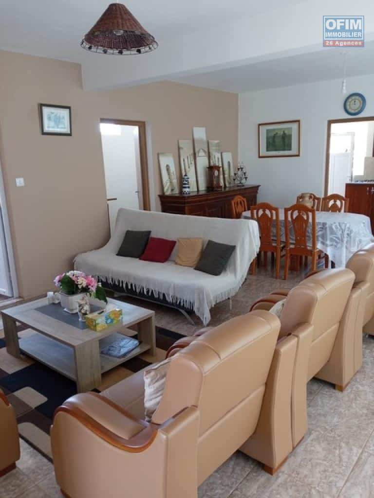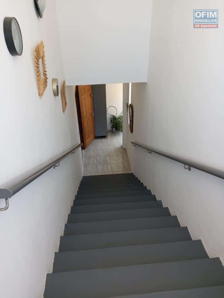 À l’étage se trouve un logement indépendant comprenant trois chambres à coucher dont une climatisée et une autre avec terrasse privative, un espace de vie climatisé avec salon et coin repas, ainsi qu’une cuisine équipée. À l’extérieur, la propriété propose un espace couvert et fermé avec cuisine grasse, toilettes et store, un garage fermé avec porte électrique, un système de vidéosurveillance, ainsi qu’un jardin entièrement clôturé. Il est également possible de stationner plusieurs véhicules dans l’enceinte de la villa.
