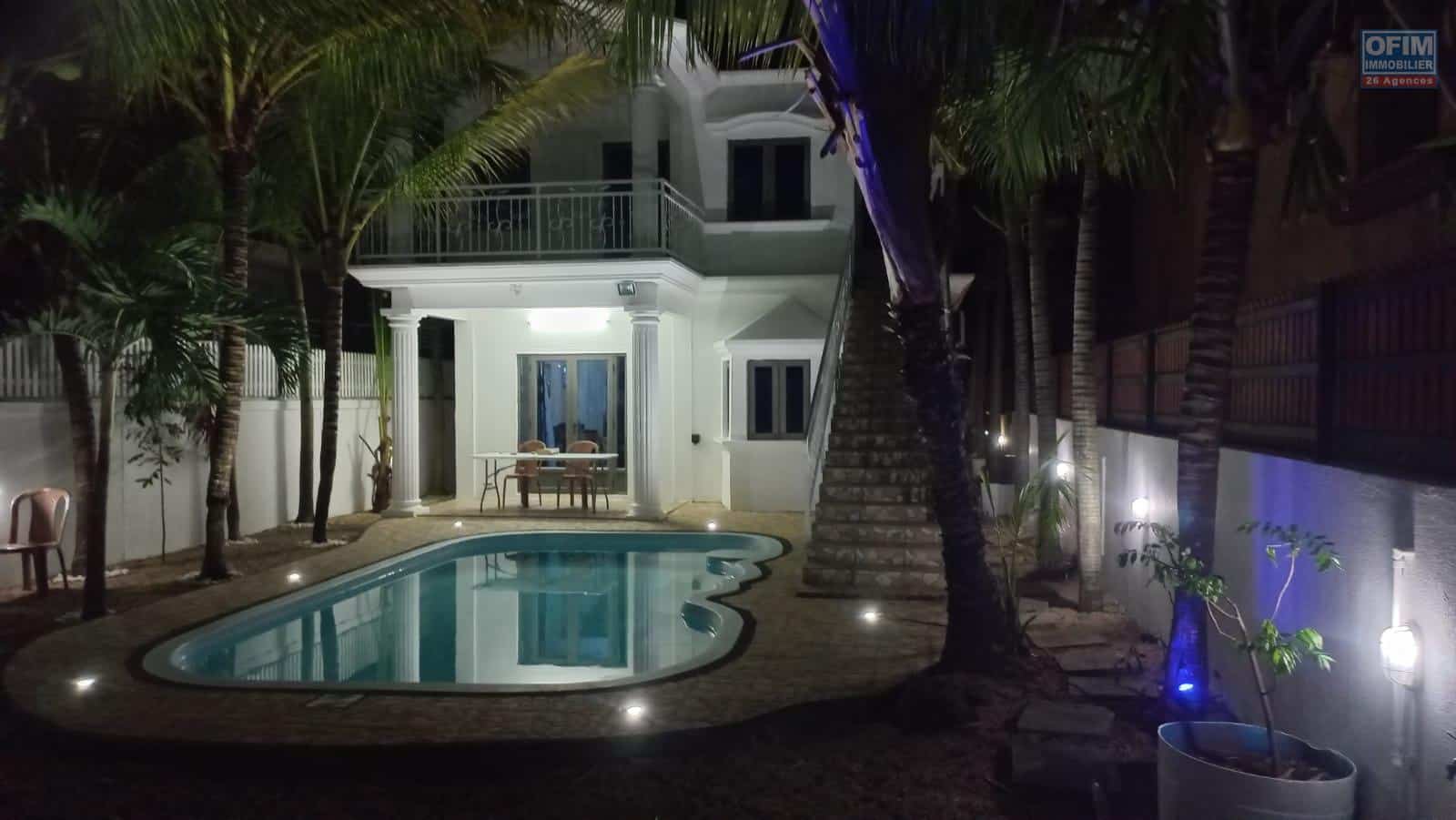 Un studio est également aménagé sur le rooftop, bénéficiant d’une belle vue dégagée et d’une exposition ensoleillée. La villa dispose d’une piscine, d’un terrain arboré et de deux places de stationnement à l’intérieur de la propriété. La vue depuis le rooftop constitue également un véritable atout.