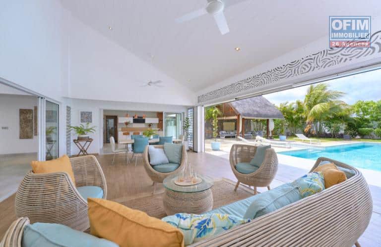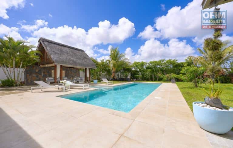 OFIM Immobilier vous propose d’acquérir une villa d’exception avec piscine située dans une résidence de prestige, accessible aux étrangers et à seulement 2 minutes du centre de Grand Baie.