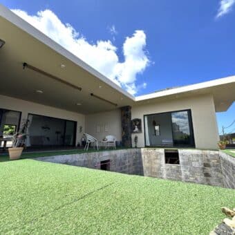 Implantée sur un terrain de 1 017 m², cette propriété offre une surface utile de 369,60 m² ainsi qu’une piscine de 47 m², idéale pour profiter pleinement du climat tropical. La villa se compose de quatre chambres en suite, d’un kiosque, d’un double garage et se trouve au sein d’une petite copropriété de 8 villas avec sécurité, garantissant intimité et tranquillité.