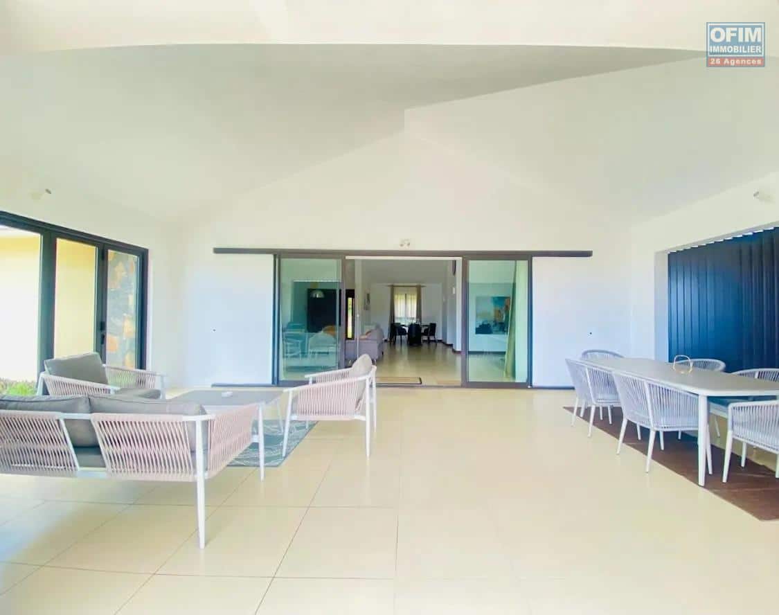 Implantée sur un terrain paysagé de 1 332 m², cette villa développe 342 m² habitables aux volumes généreux et aux prestations soignées. Elle comprend trois chambres climatisées en suite, dont une magnifique master bedroom avec grand dressing, ainsi qu’une pièce de vie baignée de lumière comprenant un grand salon et un espace repas. Elle bénéficie d’un accès direct à une spacieuse terrasse couverte offrant une vue imprenable. La cuisine indépendante est entièrement équipée et aménagée, complétée par une buanderie et une arrière-cuisine.