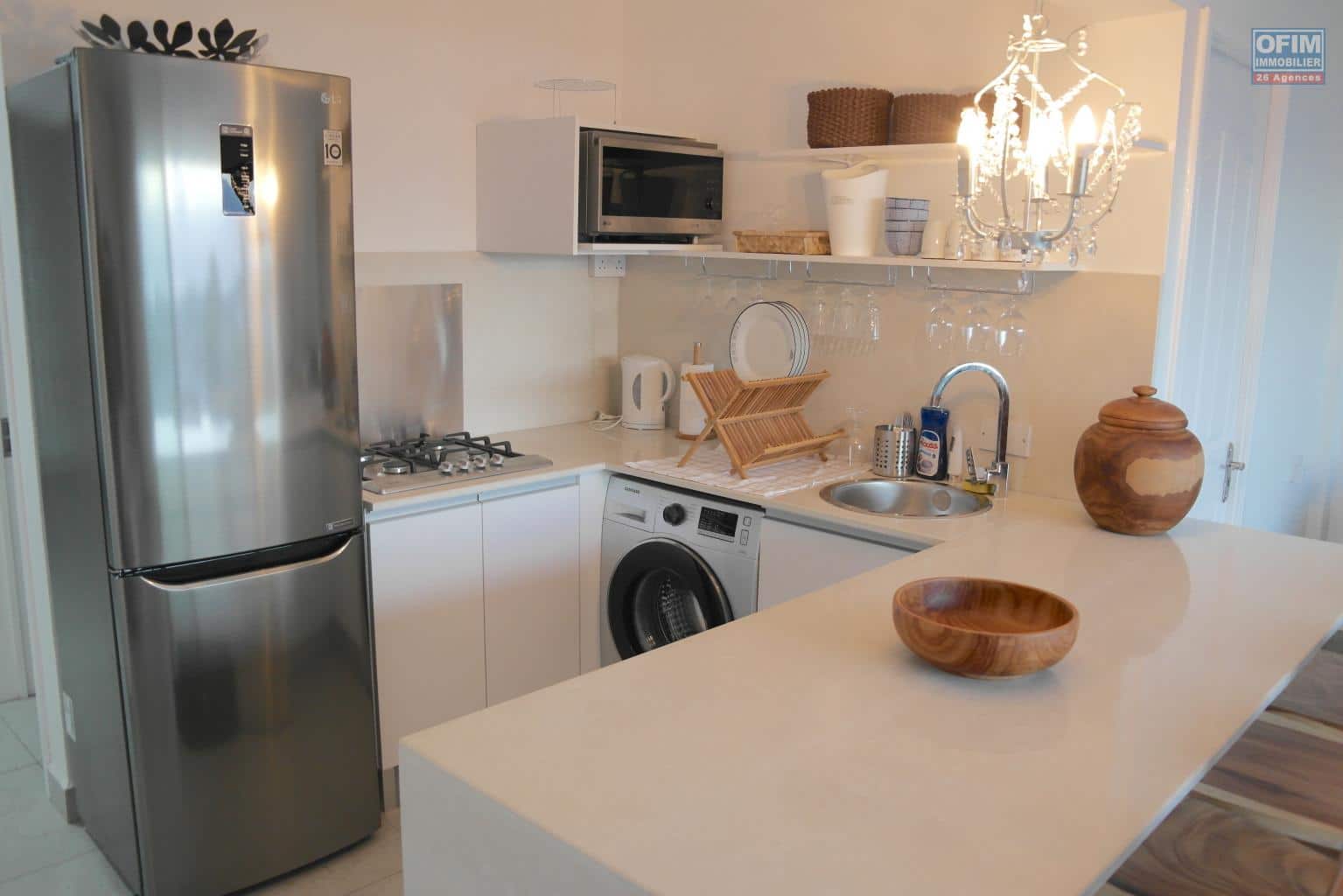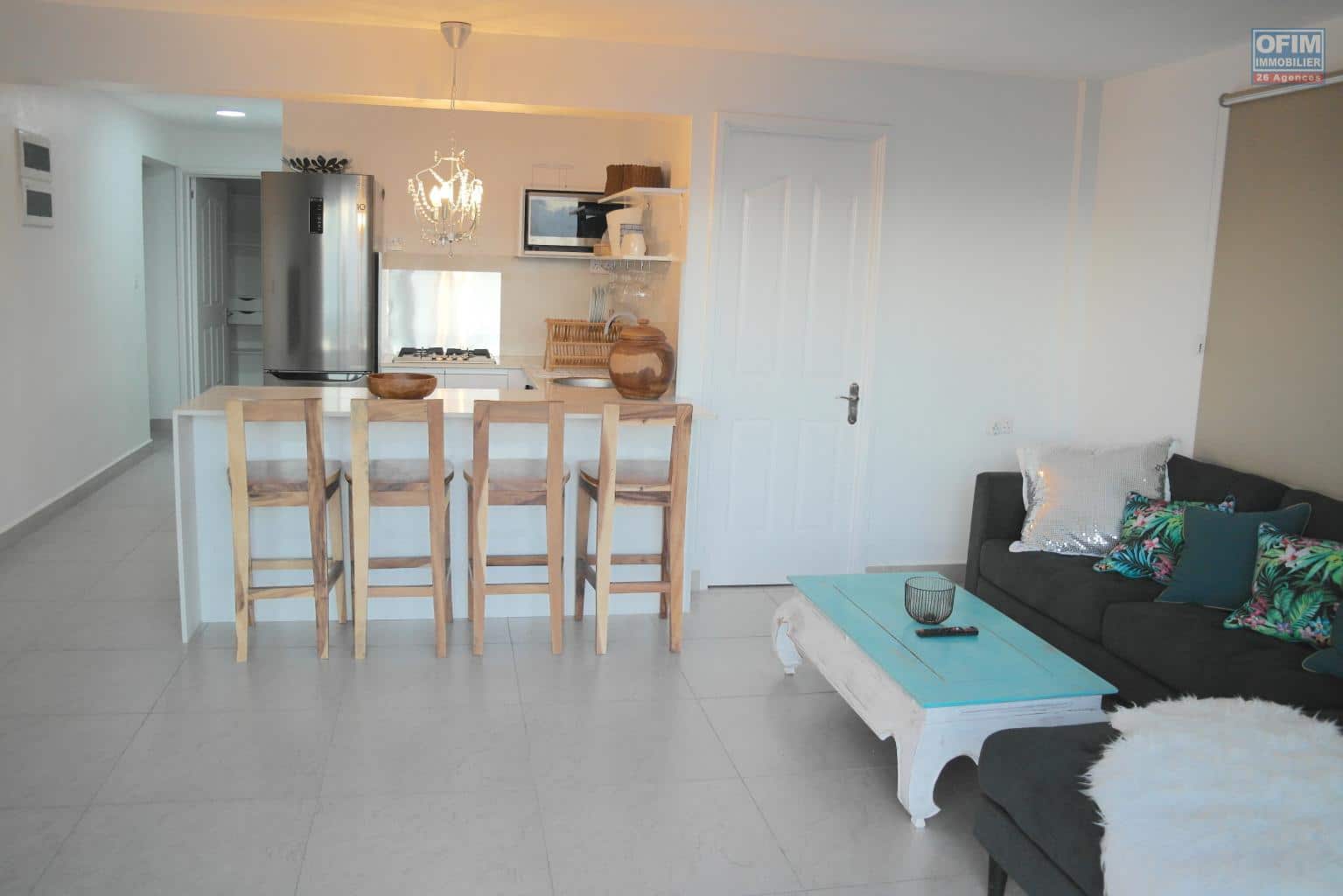 Ofim Immobilier vous propose à la location un charmant appartement situé au quatrième étage avec ascenseur, au sein d’une résidence sécurisée à Flic en Flac.