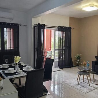 Meublé et décoré avec goût, il offre un spacieux espace de vie grâce à de grandes baies vitrées. Dès l’entrée, vous serez charmé par la pièce principale ouverte sur la terrasse et le jardin, comprenant un grand salon ainsi qu’un espace repas convivial. La cuisine, moderne et entièrement équipée, ravira les amateurs de bons petits plats. Côté nuit, l’appartement dispose de deux chambres climatisées avec rangements.