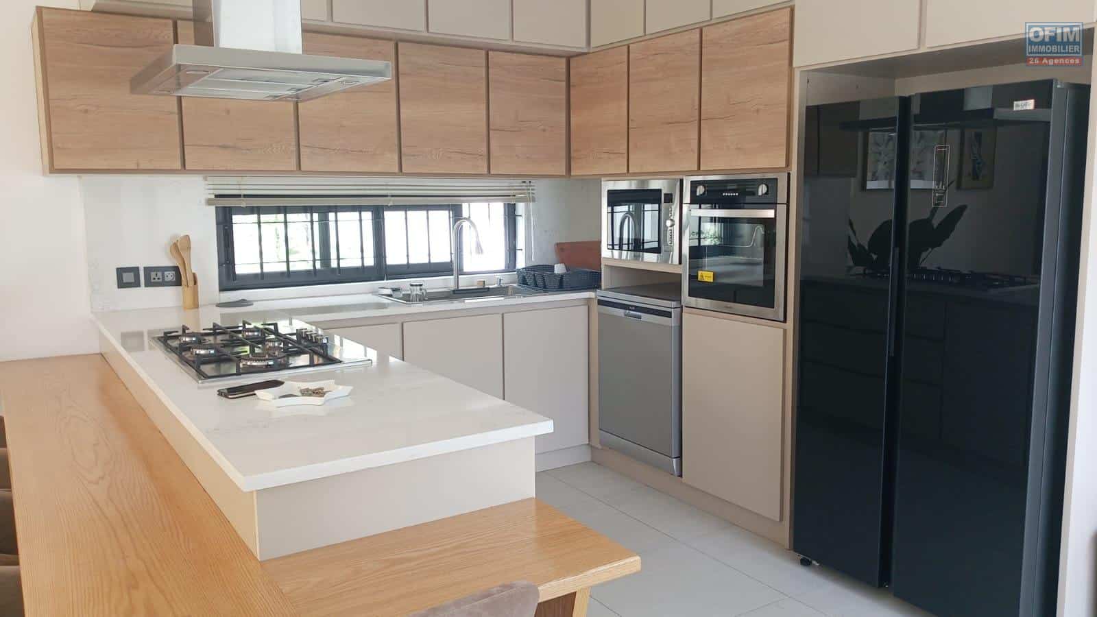 OFIM Immobilier vous propose à la location cette villa neuve de 240 m² située à Grand Baie, à seulement 5 minutes de Super U, des plages, restaurants et commodités.