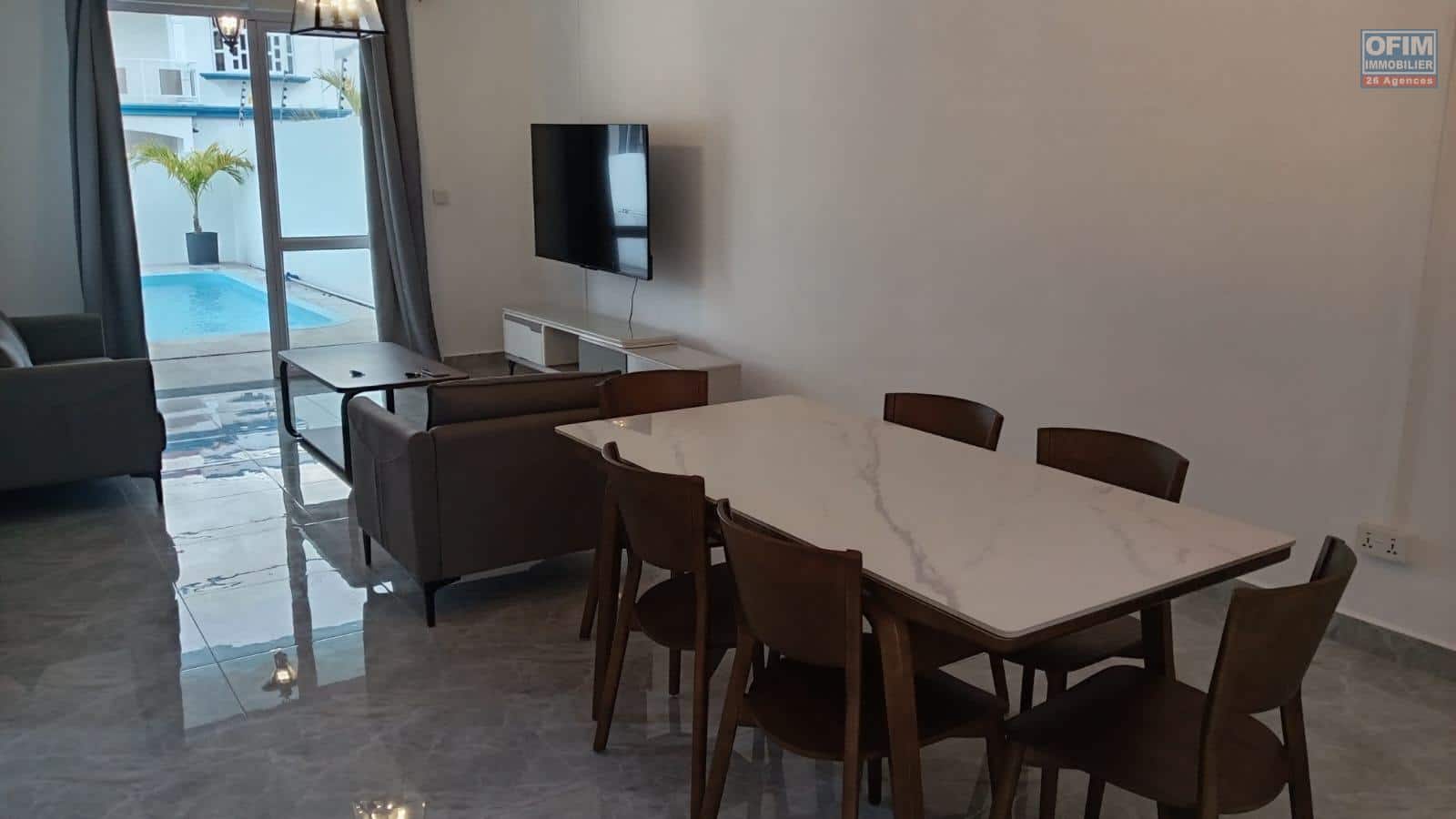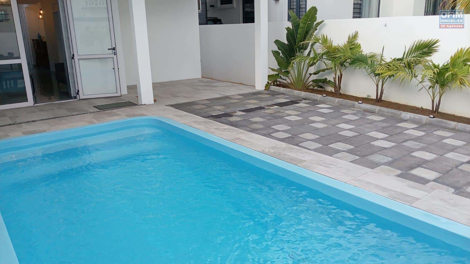 OFIM Immobilier vous propose à louer une charmante villa neuve avec piscine, idéalement située au centre de Grand Baie, dans un emplacement privilégié avec toutes les commodités accessibles à moins de 5 minutes à pied.